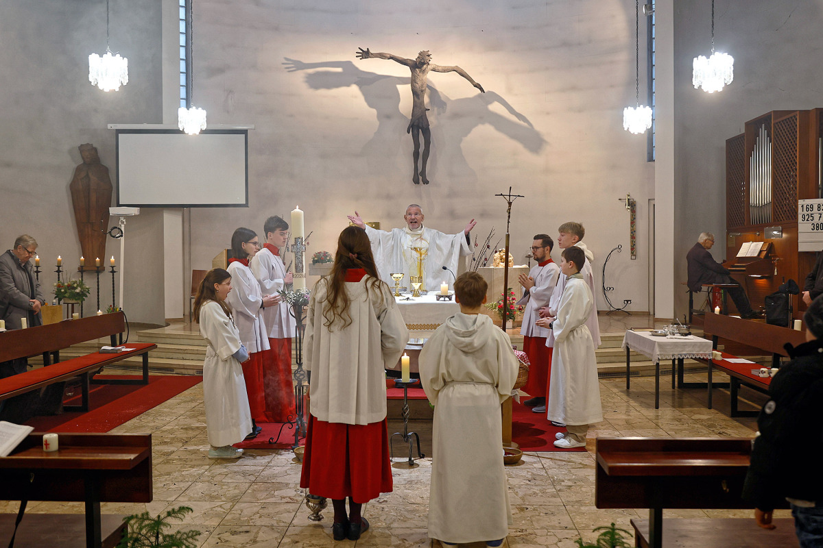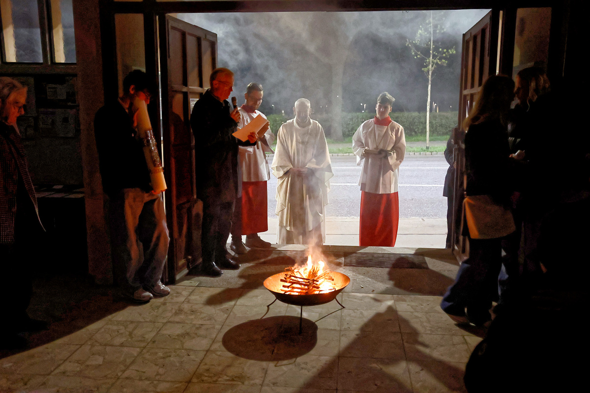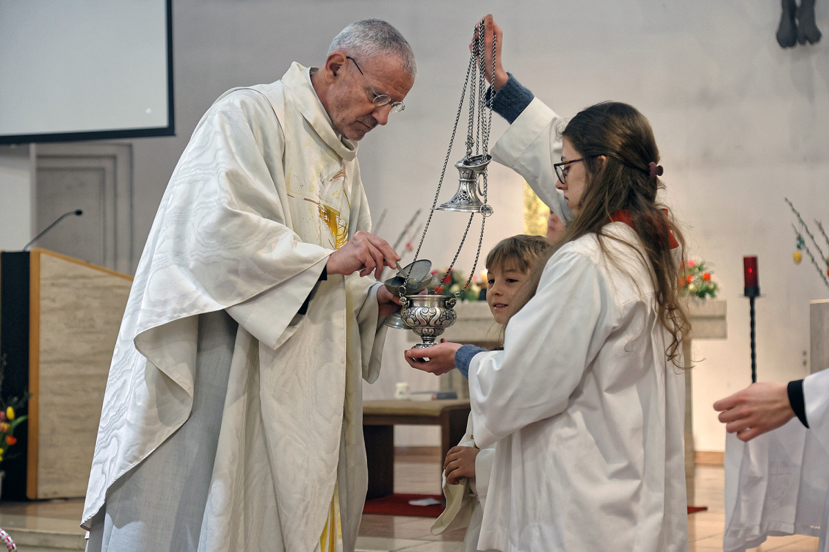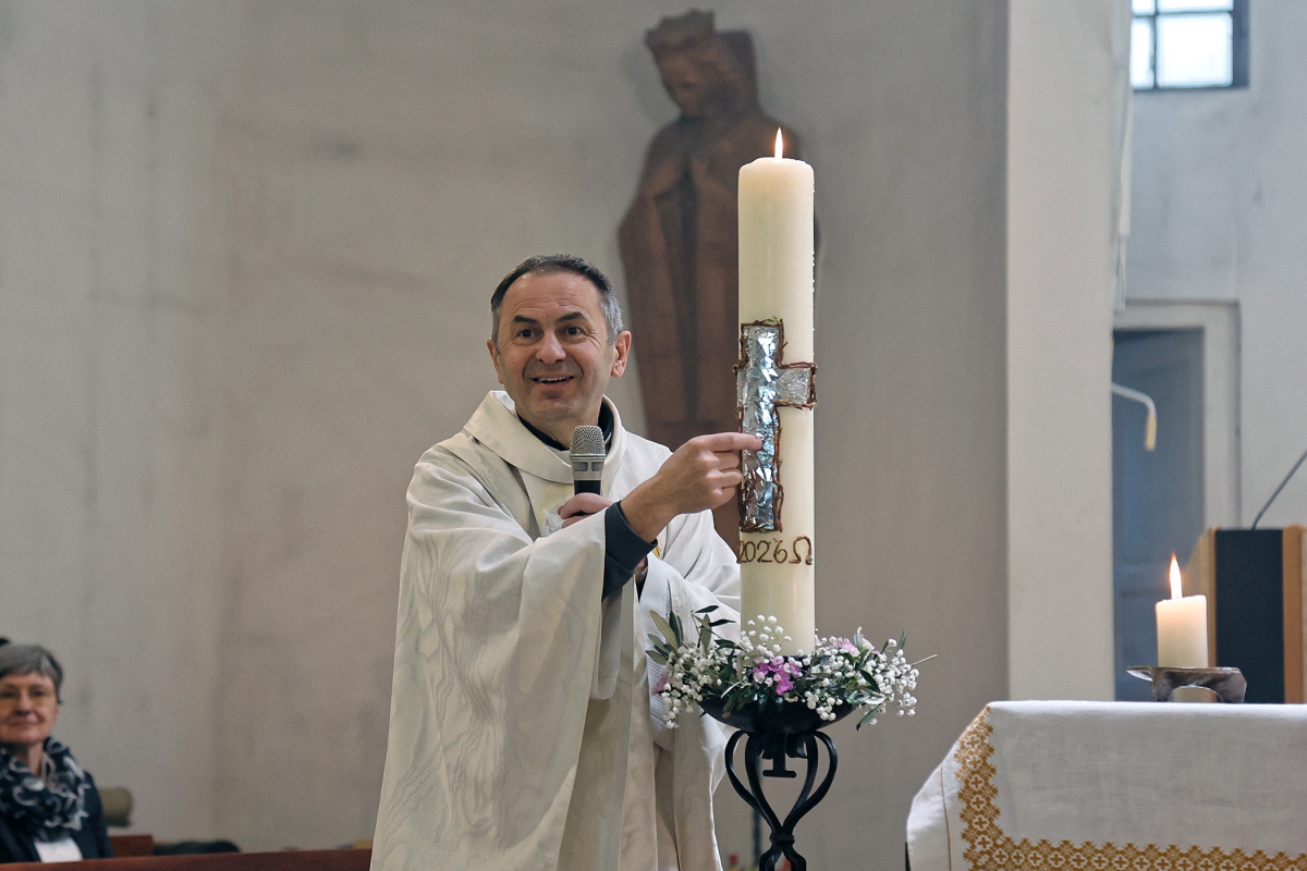 Die Feier ging weiter mit der Allerheilgen-Litanei, unserer Erneuerung des Taufversprechens, mit der Segnung des Wassers im Taufbrunnen und der Eucharistiefeier. Nach der Kommunion in beiderlei Gestalten und der Speisesegnung, beendete GV Nikolaus die Heiligen Drei Tage mit seinem Ostersegen.