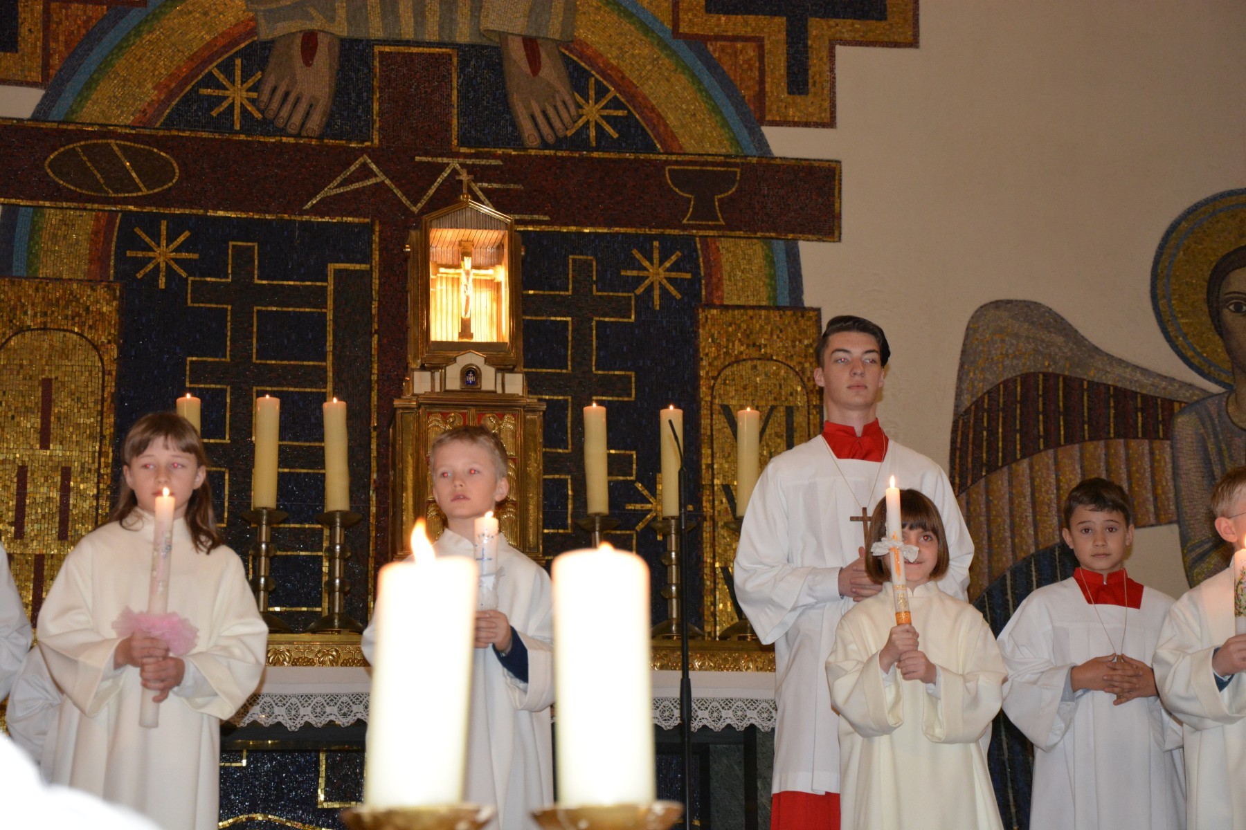Durch die heuer etwas kleinere Schar von Erstkommunionkindern wurde die Messe umso persönlicher. Der Jugendchor machte die Feier noch lebendiger und Pfarrer Martins Erzählung von einer 94 Jahre alten Dame, die täglich in die Messe kommt, weil es ihr Brot für den Alltag ist, beeindruckte unsere Erstkommunionkinder. Eine gemütliche Agape und ein Erstkommunionausflug am folgenden Tag rundeten dieses besondere Ereignis gebührend ab.