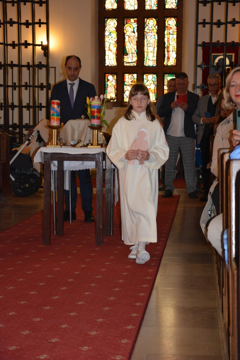 Durch die heuer etwas kleinere Schar von Erstkommunionkindern wurde die Messe umso persönlicher. Der Jugendchor machte die Feier noch lebendiger und Pfarrer Martins Erzählung von einer 94 Jahre alten Dame, die täglich in die Messe kommt, weil es ihr Brot für den Alltag ist, beeindruckte unsere Erstkommunionkinder. Eine gemütliche Agape und ein Erstkommunionausflug am folgenden Tag rundeten dieses besondere Ereignis gebührend ab.