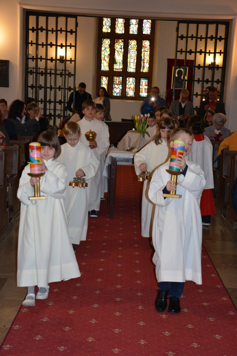 Durch die heuer etwas kleinere Schar von Erstkommunionkindern wurde die Messe umso persönlicher. Der Jugendchor machte die Feier noch lebendiger und Pfarrer Martins Erzählung von einer 94 Jahre alten Dame, die täglich in die Messe kommt, weil es ihr Brot für den Alltag ist, beeindruckte unsere Erstkommunionkinder. Eine gemütliche Agape und ein Erstkommunionausflug am folgenden Tag rundeten dieses besondere Ereignis gebührend ab.