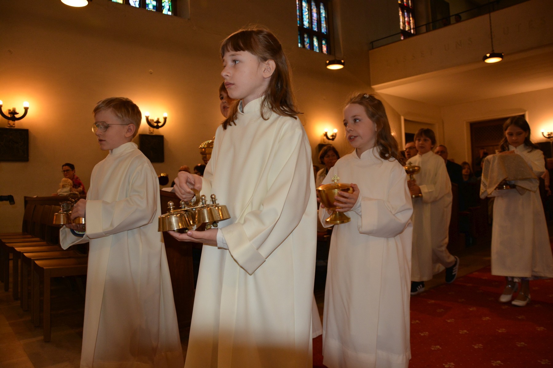 Durch die heuer etwas kleinere Schar von Erstkommunionkindern wurde die Messe umso persönlicher. Der Jugendchor machte die Feier noch lebendiger und Pfarrer Martins Erzählung von einer 94 Jahre alten Dame, die täglich in die Messe kommt, weil es ihr Brot für den Alltag ist, beeindruckte unsere Erstkommunionkinder. Eine gemütliche Agape und ein Erstkommunionausflug am folgenden Tag rundeten dieses besondere Ereignis gebührend ab.