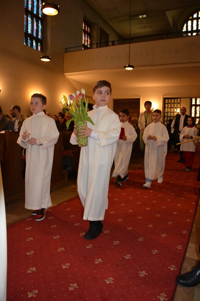 Durch die heuer etwas kleinere Schar von Erstkommunionkindern wurde die Messe umso persönlicher. Der Jugendchor machte die Feier noch lebendiger und Pfarrer Martins Erzählung von einer 94 Jahre alten Dame, die täglich in die Messe kommt, weil es ihr Brot für den Alltag ist, beeindruckte unsere Erstkommunionkinder. Eine gemütliche Agape und ein Erstkommunionausflug am folgenden Tag rundeten dieses besondere Ereignis gebührend ab.