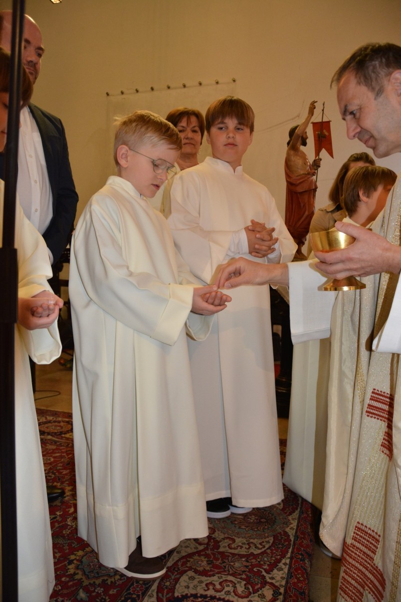 Durch die heuer etwas kleinere Schar von Erstkommunionkindern wurde die Messe umso persönlicher. Der Jugendchor machte die Feier noch lebendiger und Pfarrer Martins Erzählung von einer 94 Jahre alten Dame, die täglich in die Messe kommt, weil es ihr Brot für den Alltag ist, beeindruckte unsere Erstkommunionkinder. Eine gemütliche Agape und ein Erstkommunionausflug am folgenden Tag rundeten dieses besondere Ereignis gebührend ab.