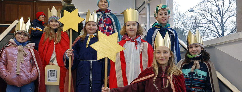 … so schallte es von 3.–6. Jänner in vielen Häusern. In den ersten Tagen des Jahres 2025 waren 97 (!) Kinder mit 26 Begleiter*innen aus unserer Pfarre als Sternsinger*innen unterwegs. Wir hoffen, dass sie viele von Euch daheim besucht haben und Euch mit ihren Gesängen und Sprüchen weihnachtliche Freude und den Segen für 2025 ins Haus gebracht haben.