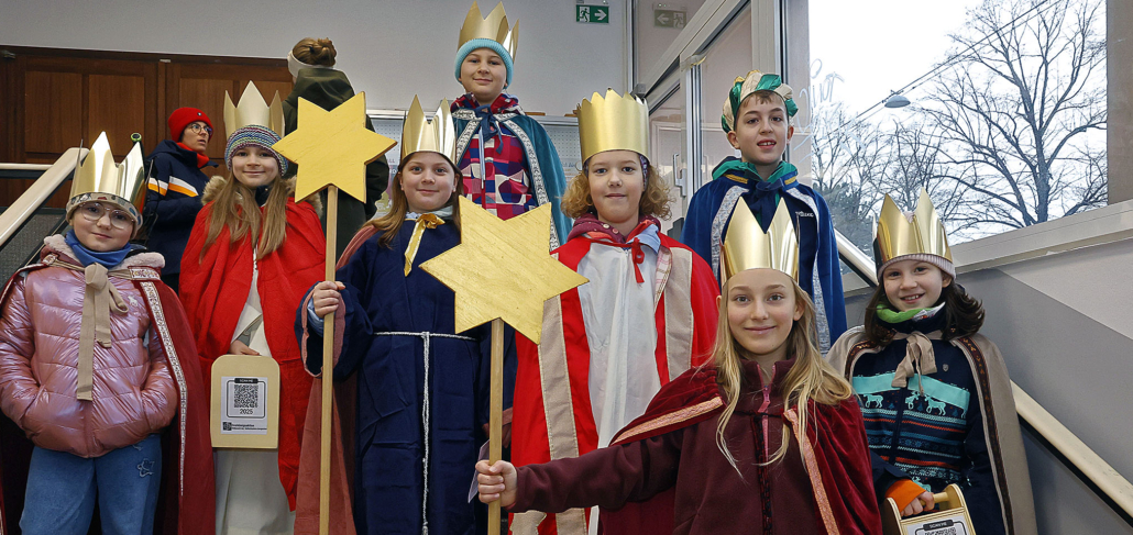… so schallte es von 3.–6. Jänner in vielen Häusern. In den ersten Tagen des Jahres 2025 waren 97 (!) Kinder mit 26 Begleiter*innen aus unserer Pfarre als Sternsinger*innen unterwegs. Wir hoffen, dass sie viele von Euch daheim besucht haben und Euch mit ihren Gesängen und Sprüchen weihnachtliche Freude und den Segen für 2025 ins Haus gebracht haben.