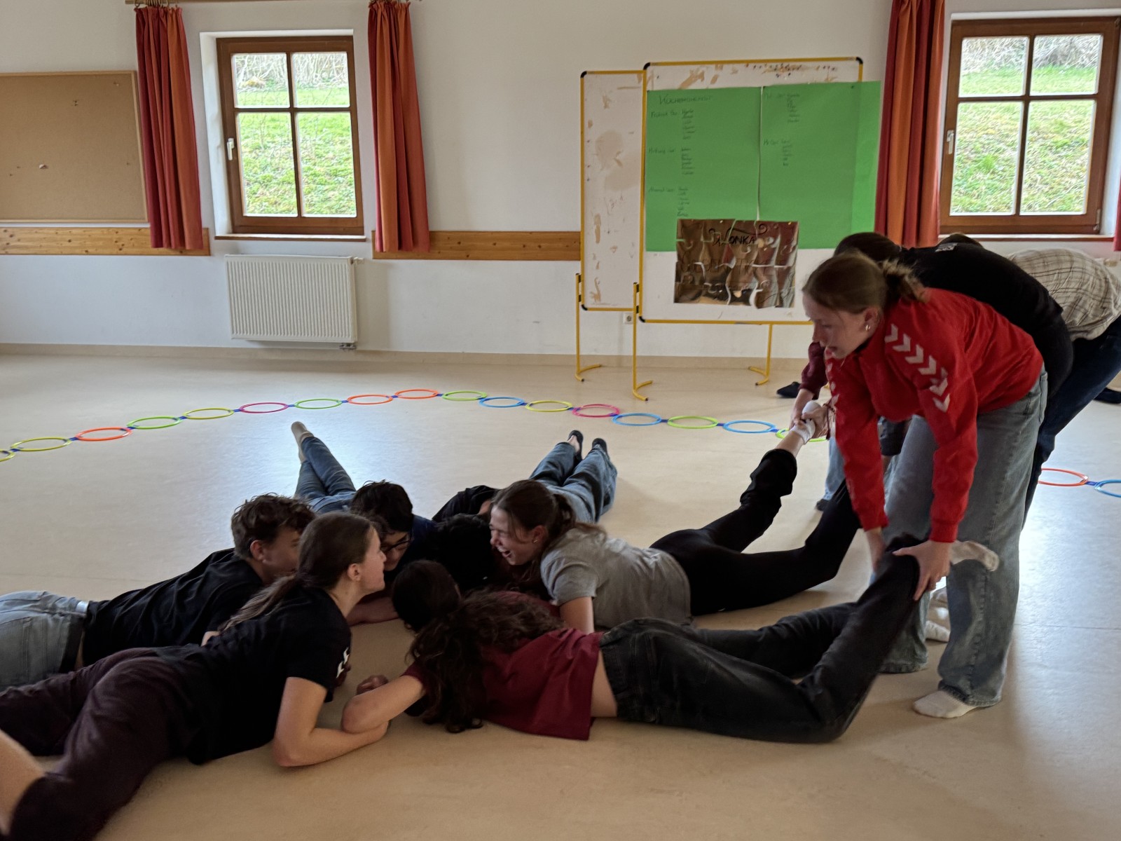 Heuer ging es vom 4. bis zum 6. April mit rund 30 Jugendlichen und sechs Begleitpersonen (zwei davon waren unsere ESC-Freiwilligen) zum Schacherhof bei Seitenstetten. Dieser verwandelte sich fürs Jugendwochenende in Wonkas Schokoladenfabrik.