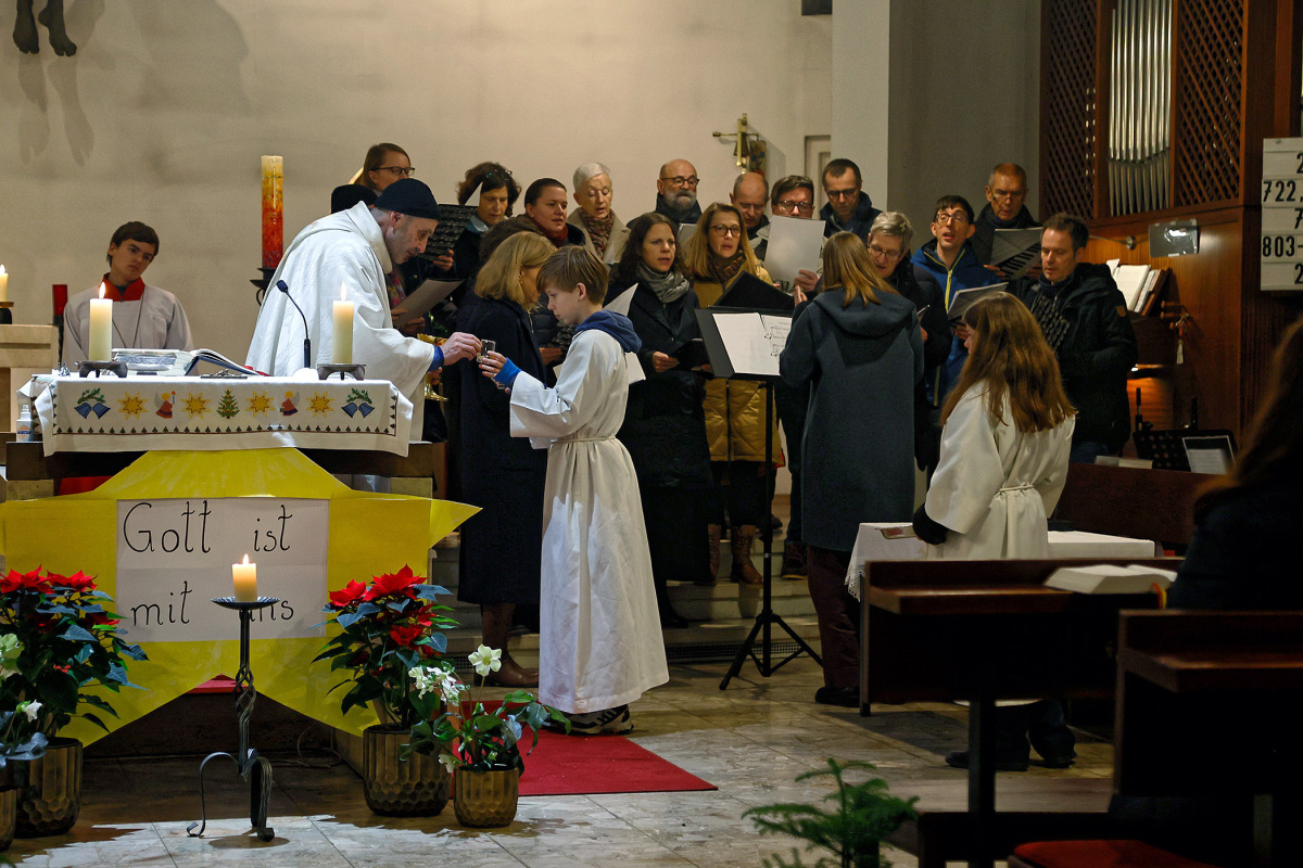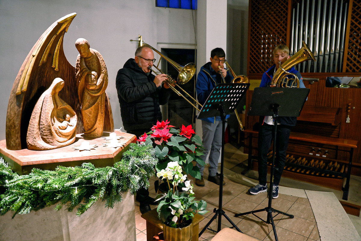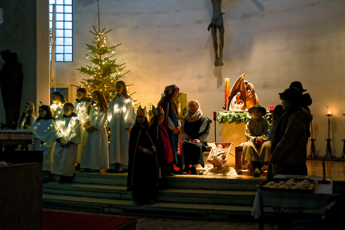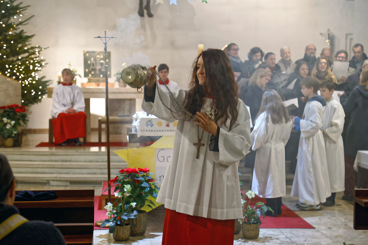 Abgerundet wurde die Kindervesper durch die brillanten „Happy Voices“ unter der Leitung von Evi und Thomas, durch das Verteilen des Friedenslichts aus Bethlehem und durch weihnachtliche Musik dargebracht von zwei Posaunen und einem Tenorhorn. Danke an alle, die diese besondere und stimmungsvolle Stunde vorbereitet und ermöglicht haben.