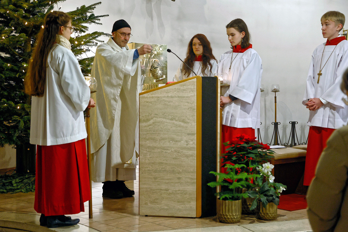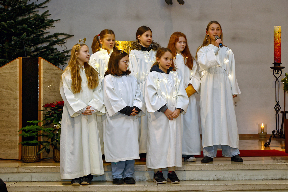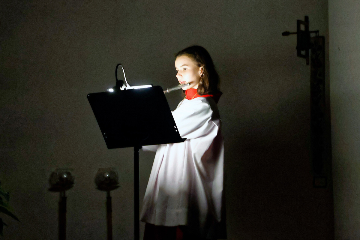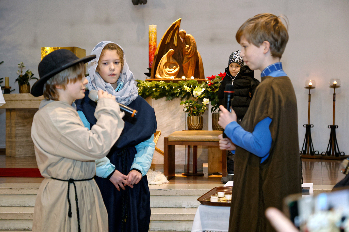 Abgerundet wurde die Kindervesper durch die brillanten „Happy Voices“ unter der Leitung von Evi und Thomas, durch das Verteilen des Friedenslichts aus Bethlehem und durch weihnachtliche Musik dargebracht von zwei Posaunen und einem Tenorhorn. Danke an alle, die diese besondere und stimmungsvolle Stunde vorbereitet und ermöglicht haben.