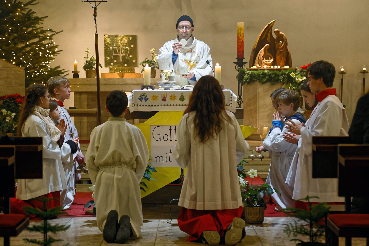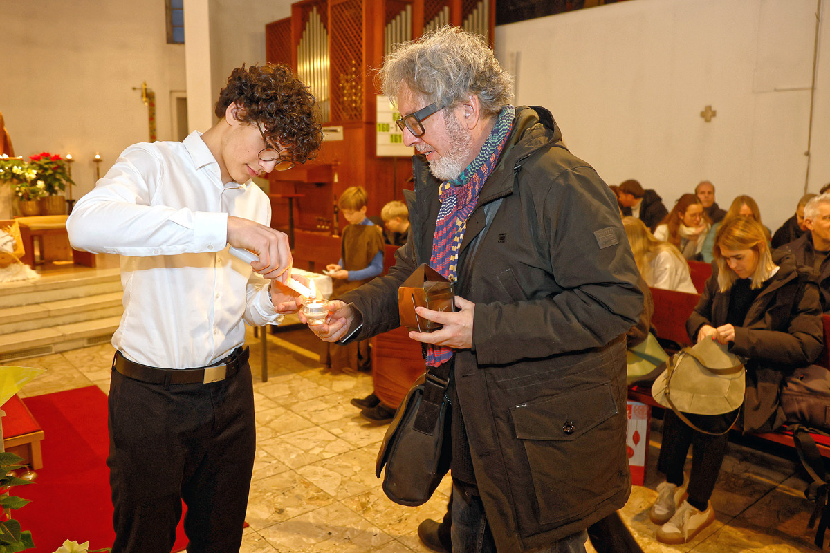 Die zentrale Botschaft zum 4. Adventsonntag ist „Folge deinem Traum“. Wieder feierte Subregens Markus Muth mit uns die Hl. Messe und erneut erklang W.A. Mozarts „Dona nobis pacem“ nach der Kommunion. Dargebracht wurde das Musikstück von 12 jungen Musikerinnen und Musikern unter der Leitung von „Maestro“ Leo, der auch alle Messbesucherinnen und Messbesucher mit einbezogen hat.