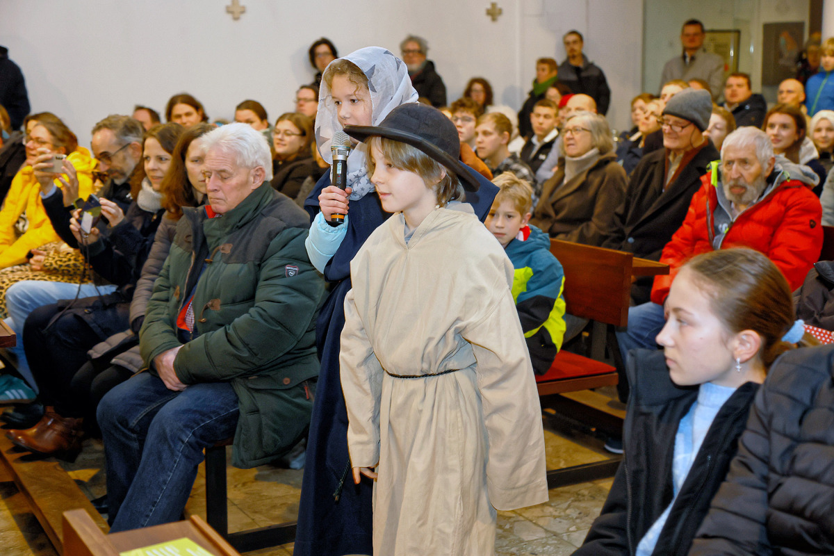 Wenn man am 24.12. um 15:30 Uhr in die Kirche von Schönbrunn-Vorpark kommt und keinen Sitzplatz mehr bekommt, dann wird Kindervesper gefeiert. Auch heuer war unser Gotteshaus bis auf den letzten Platz gefüllt, auch heuer durften wir ein großartiges Krippenspiel erleben und natürlich haben wir das Weihnachtsevangelium gehört und gemeinsam gebetet und gesungen.
