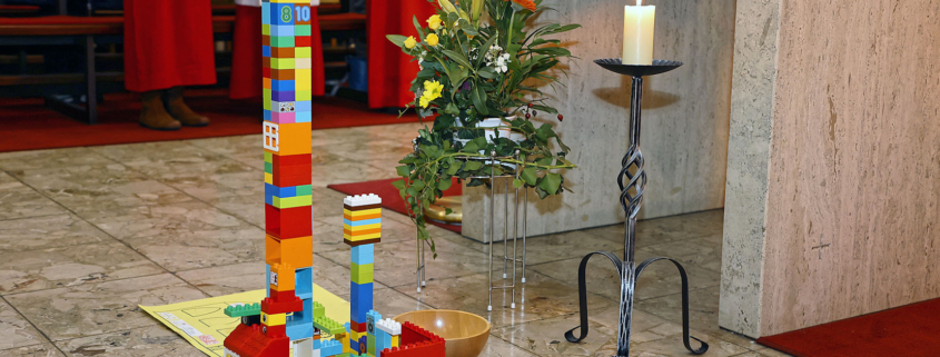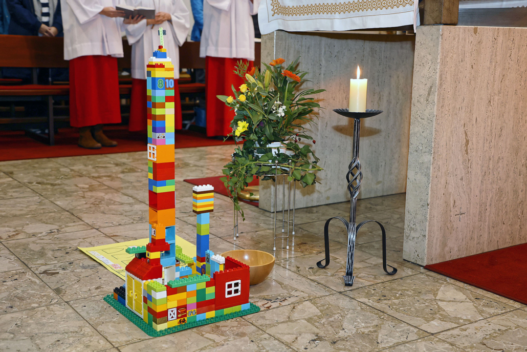 Am Sonntag, den 6. Oktober, feierten wir in Schönbrunn-Vorpark unser 52. Kirchweihfest. Während in der Kirche die Erwachsenen sangen und beteten, taten das die Kinder im kleinen Saal beim Kinderwortgottesdienst auf ihre Weise. Sie bauten eine Lego-Kirche und fügten sich selbst als Bausteine ein. Beim Vater Unser kamen dann alle zusammen und unsere Gemeinschaft aus lebendigen Steinen wurde spürbar.