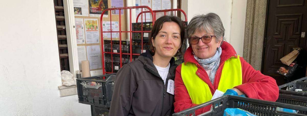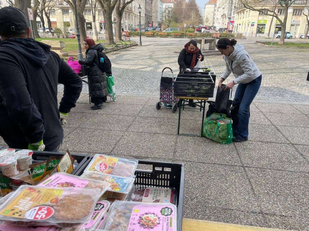 Damit alles reibungslos funktionieren kann, arbeiten ehrenamtliche Helfer:innen mit grossen Engagement. Gemeinsam mit dem Team sortieren wir – Anika und Gökçen – die Lebensmittel, bauen Tische auf und heißen die Besucher:innen freundlich willkommen.