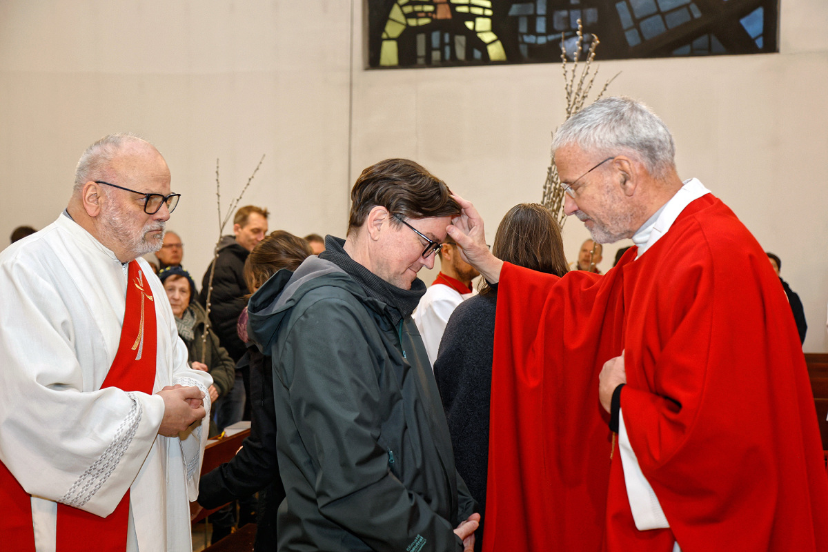 Es war aber nicht nur der Gottesdienst zum Palmsonntag, sondern auch die Geburtstagsmesse für die Jubilarinnen und Jubilare des Monats März. Natürlich haben sie eine Kerze entzündet, bekamen am Ende der Eucharistiefeier jeweils einen Einzelsegen und dieses Mal auch einen speziellen Palmkatzerl-Zweig.