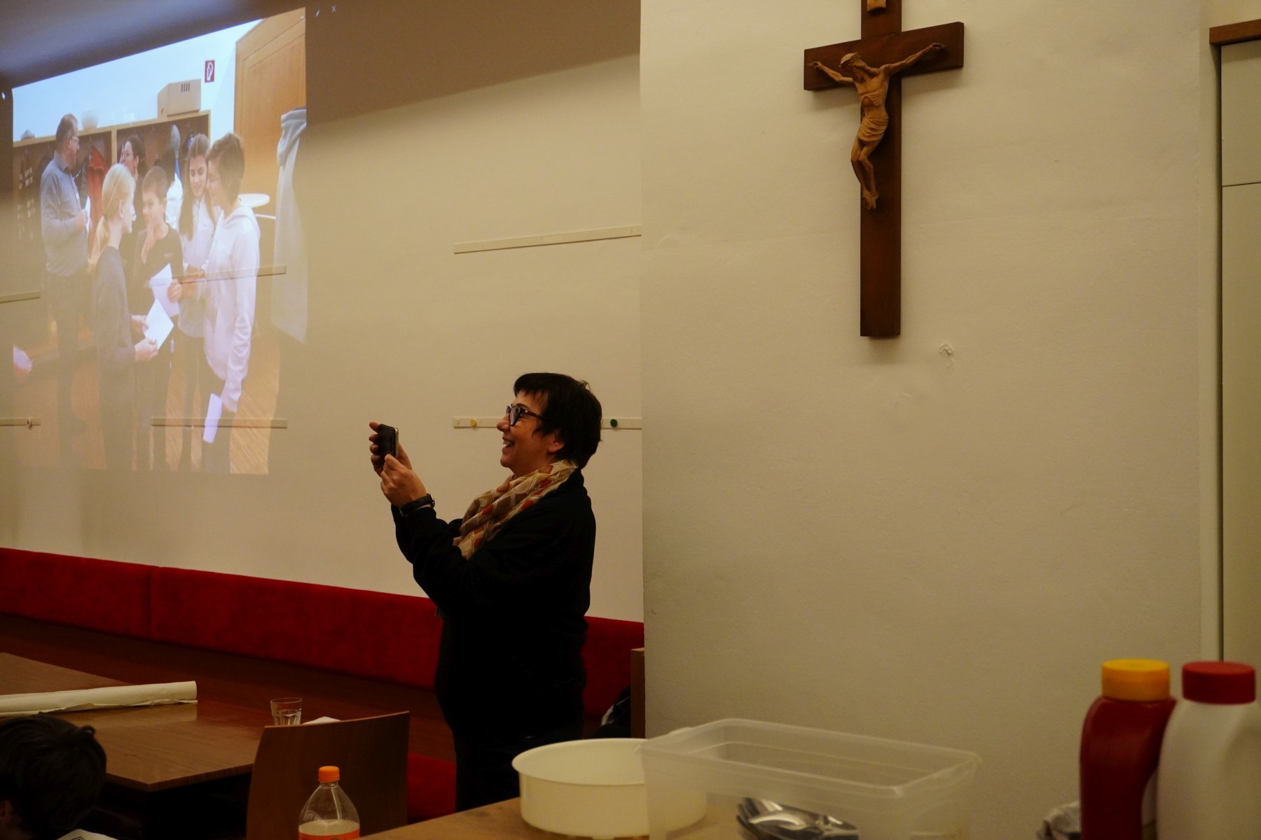 Draußen schneite es und so kamen die geladenen Gäste nach und nach in kleinen Gruppen zum Essen. Wir konnten ihnen zuhören und in aller Ruhe mit ihnen reden. „Dieses Gespräch hat uns heute sehr gut gefallen. Es war wirklich interessant.“ Darüber waren sich einige Buben einig, die einem Gast länger zugehört hatten.