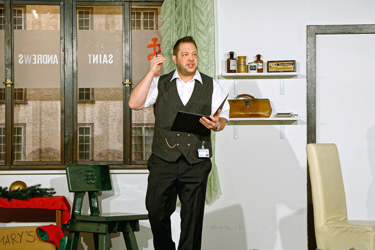 Denn gelacht wurde auch heuer wieder sehr viel, bei der Komödie rund um Dr. Mortimore, der verzweifelt versucht, die Existenz seiner Tochter vor seiner Frau und Kollegen zu verheimlichen. Die Perfomance unserer Laienschauspielgruppe braucht dem Vergleich mit Profis nicht zu scheuen. Immer wieder hört man in den Pausen und nach den Aufführungen den Satz „Wie in den Kammerspielen“.