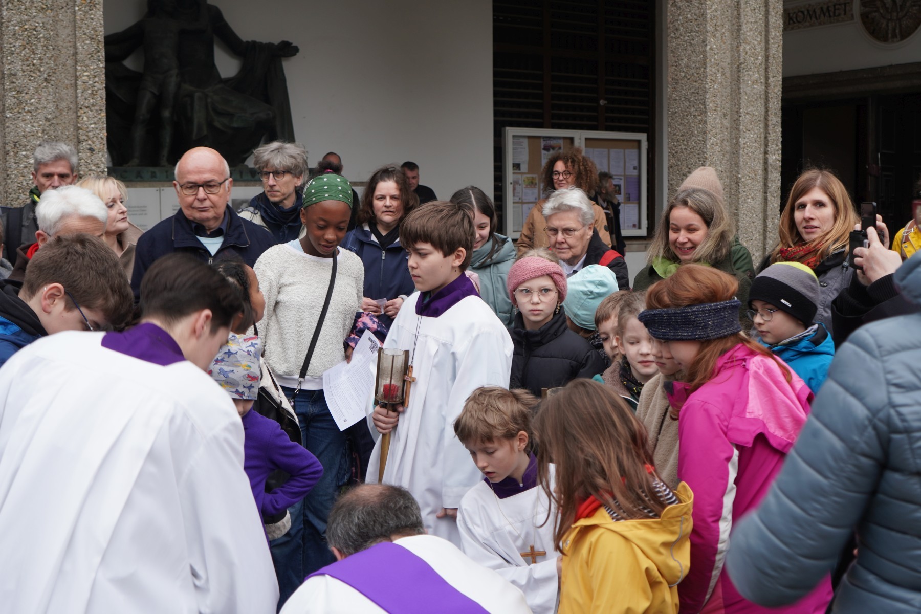 Passend zum Evangelium über den barmherzigen Vater schrieben neben unseren Erstkommunionkindern auch viele Messbesucher:innen auf Zettel, was sie in ihrem Leben ändern möchten um es liebevoller gestalten zu können. Im Anschluss konnten diese verbrannt werden, um die Veränderung zu bekräftigen.