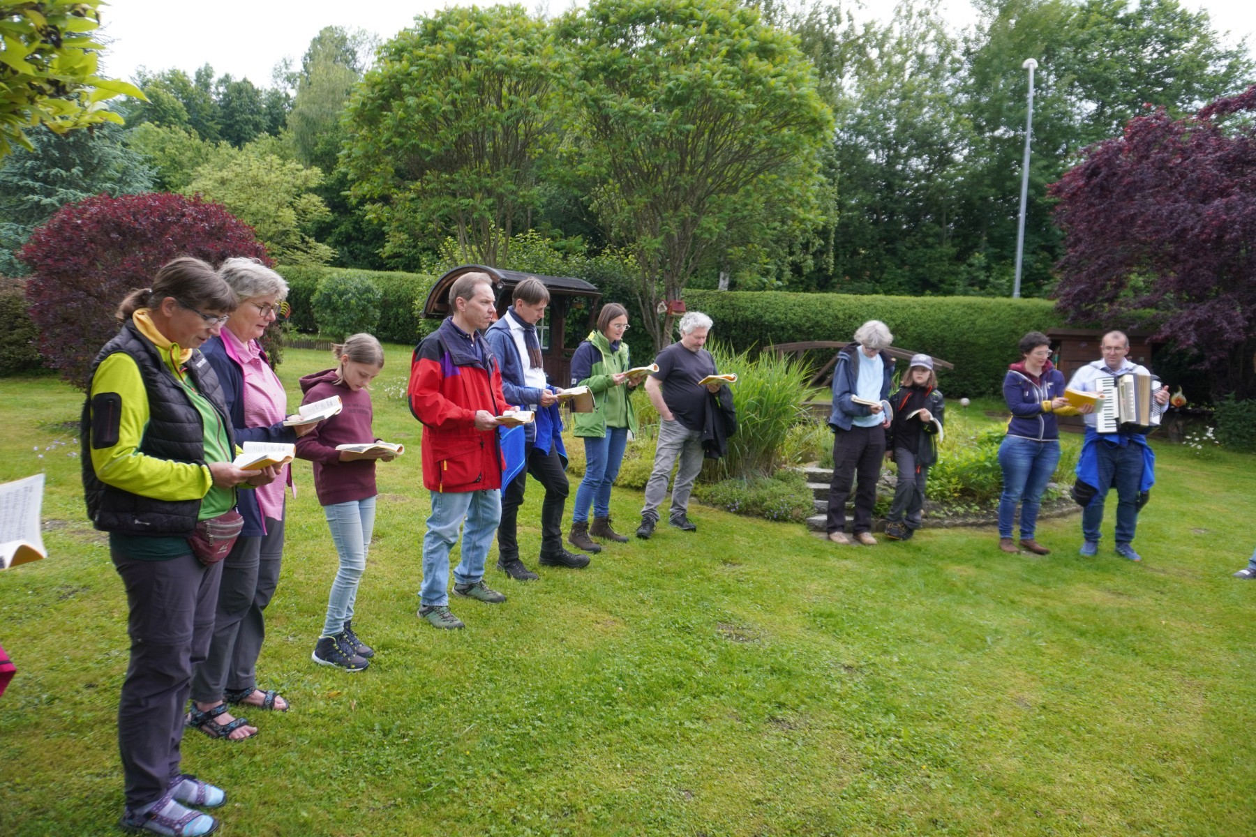 Wo Zwei oder Drei in meinem Namen versammelt sind…. dann machen sie manchmal auch mehr als zwei oder drei Schritte, ja sogar bis zu fünfundfünzigtausend. Am Freitag Nachmittag begrüssten sich die vierundsechzig Wanderbeine in Kirchberg am Wechsel; manche kannten sich, manche waren neu und doch alle gleich so vertraut und sie wurden herzlichst bei den Hartmannschwestern aufgenommen. Bei einem gemütlichen und besingenden Abendspaziergang entdeckten sich auch die weiteren Körperkomponenten und bereiteten sich gemeinsam auf die zwei kommenden wallfahrend—zu-verbringenden Tage vor. Trotz sich ständig wechselnder Wetterinformationen wechselte die Stimmung keineswegs. Im Gegenteil: Im Herzen gab es von Anfang an Sonnenschein.