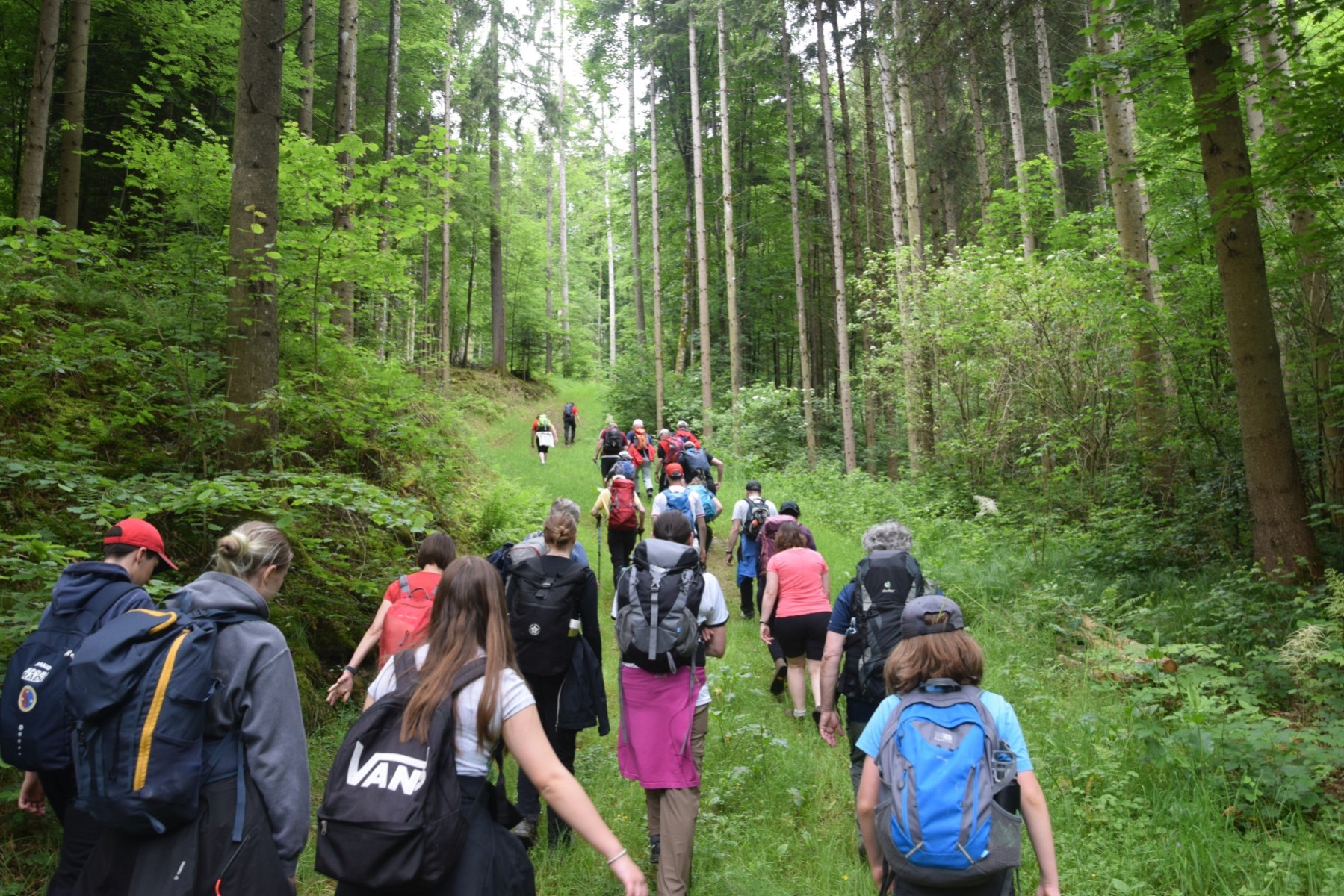 Wo Zwei oder Drei in meinem Namen versammelt sind…. dann machen sie manchmal auch mehr als zwei oder drei Schritte, ja sogar bis zu fünfundfünzigtausend. Am Freitag Nachmittag begrüssten sich die vierundsechzig Wanderbeine in Kirchberg am Wechsel; manche kannten sich, manche waren neu und doch alle gleich so vertraut und sie wurden herzlichst bei den Hartmannschwestern aufgenommen. Bei einem gemütlichen und besingenden Abendspaziergang entdeckten sich auch die weiteren Körperkomponenten und bereiteten sich gemeinsam auf die zwei kommenden wallfahrend—zu-verbringenden Tage vor. Trotz sich ständig wechselnder Wetterinformationen wechselte die Stimmung keineswegs. Im Gegenteil: Im Herzen gab es von Anfang an Sonnenschein.