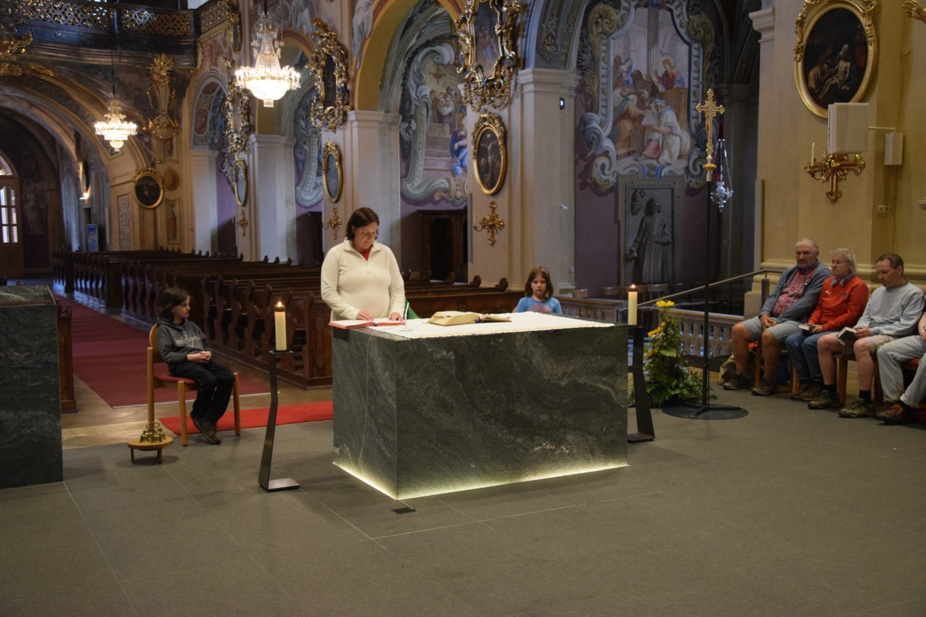 Das Frühstück mit dem Blick in die Ferne direkt nach Stift Vorau war die richtige Basis für den ersten neuer-Wallfahrts-Tages-Schritt. Die Sonne weiterhin im Herzen färbte sich auf den Himmel ab, und die Wolken ließen dem blau freien Lauf. Mit Gesang (wenn auch als Gesamtgruppe den Wir-singen-das-gesamte-gotteslob-in-einem-durch-Jungmänner-Wallfahrts-Chor in keiner Weise nur ansatzweise erreichend), schönen und herzlichen Gesprächen, mit kleinen Orientierungshoppalas kam Stift Vorau immer näher und näher und auch die Gewissheit, das jeder Schritt in der Gemeinschaft der schönste Schritt ist. Der Abschlussgottesdienst in der Vorauer Stiftskirche war der wunderbare Abschluss eines wieder einzigartigen Weges mit einzigartigen Menschen (und ihren Beinen) und mit dem wunderbaren Gefühl…. da bin ich mitten unter ihnen.