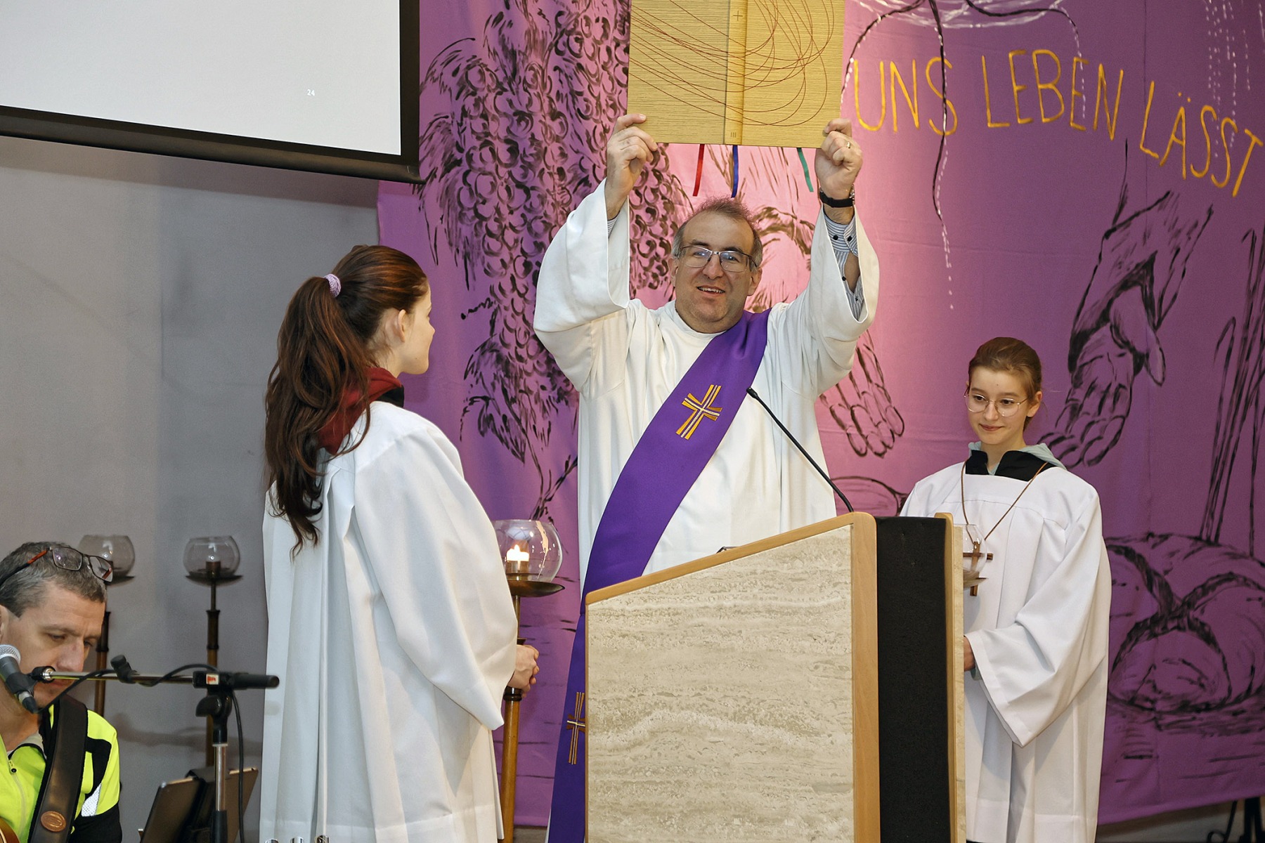 Als Abschluss des Tags der Erinnerung feierten wir – auch mit vielen, die am Nachmittag nicht dabei sein konnten – die Jugendmesse. Auch hier hatten die lieben Verstorbenen und die Erinnerung an sie einen besonderen Platz. Wir brachten die Billette und Blumen als Symbol für Menschen, an die wir besonders denken, zum Altar. Hoffnungsvolle Lesungen über Jesus, unseren Hirten, und das Licht vieler Kerzen stärkte uns die Zuversicht, dass sie im Licht Gottes einen guten Platz haben, ja vielleicht sogar „Party mit ihm feiern“, zu der auch wir einmal geladen werden.