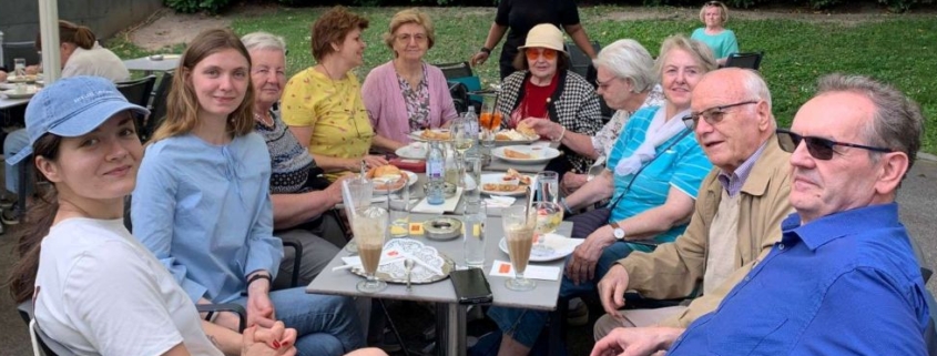 Wir (Anika und Gökçen) durften im Rahmen unseres ESK Projekts „Grenzen überwinden“ dieses Jahr dabei sein. Eine Stunde vor Beginn des Treffens haben wir mit Berti und Rosemarie alles vorbereitet: Brote belegen, Kaffe kochen, Mehlspeisen auf eine Platte herrichten, den Tisch decken und dekorieren.