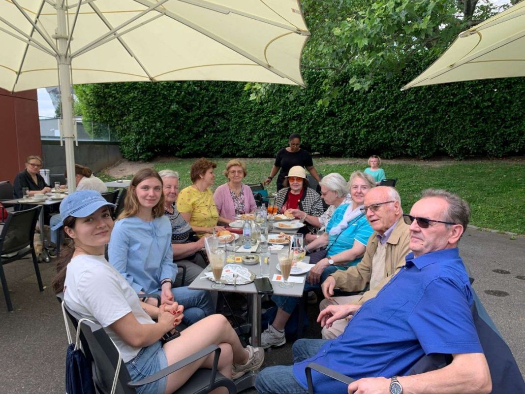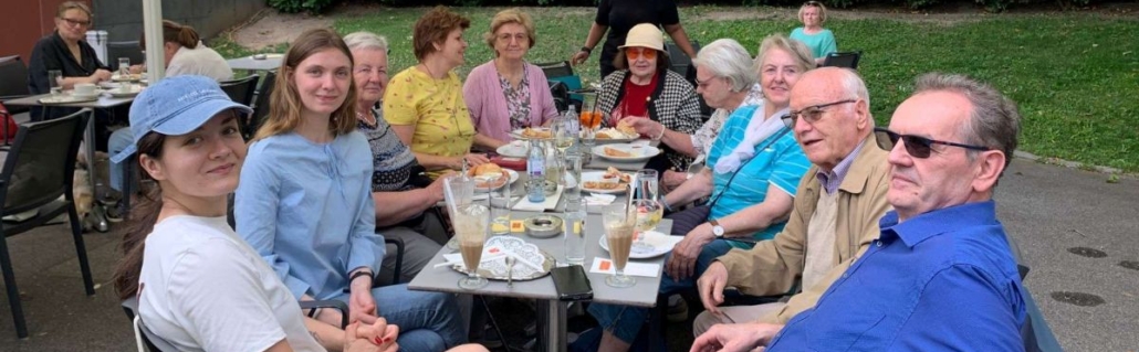 Wir (Anika und Gökçen) durften im Rahmen unseres ESK Projekts „Grenzen überwinden“ dieses Jahr dabei sein. Eine Stunde vor Beginn des Treffens haben wir mit Berti und Rosemarie alles vorbereitet: Brote belegen, Kaffe kochen, Mehlspeisen auf eine Platte herrichten, den Tisch decken und dekorieren.